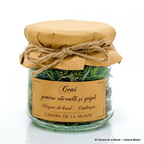Ceaiul pentru răceală şi gripă este un amestec rafinat de muguri de brad şi cimbrişor sălbatic de la munte, ideal pentru combaterea tusei şi a bronşitei.